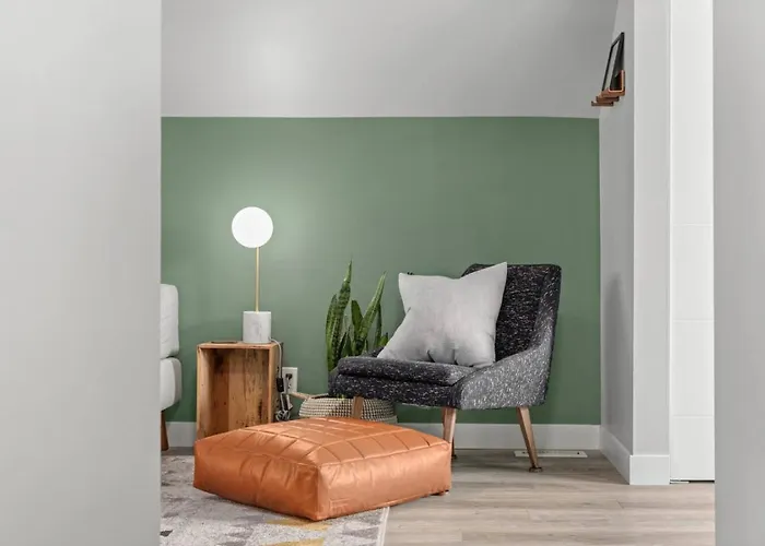 Mid Century Zen Suite. 1 Br. Near Dt, C-Train. Calgary villa offers proximity to such city sites as Bridgeland Riverside Community Association, located approximately a 5-minute walk away.